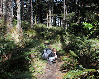 Totally rejuvenated we set off on the Oregon Coast Trail. To while away the time we played, for lack of a better word, the "diarrhea game". Not as gross as one might initially surmise, the game consisted of making a rhyme about diarrhea, as in "no pain, no strain, just sit and let it drain!" The obvious rhymes consisted of "poop" and "goop, or "creamy" and "steamy" but I was particularly proud of my rhyme using "fish emulsion" and "jet propulsion". Now, some readers, or even most readers, would question the value of this little game but the game's true value was that it kept Aiden walking without complaining.