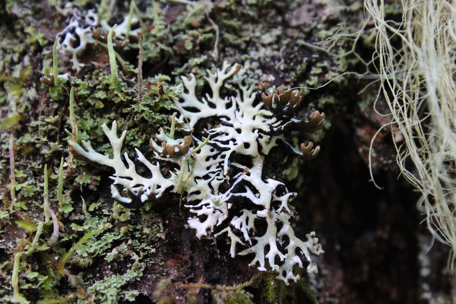 Naturally, as the trail charged uphill immediately from the trailhead, we became quite warm from the exertion thereof. The trees were mostly dead with trunks blackened by the fire and we had to step and clamber over several that had fallen, which is a common occurrence post-conflagration. Turkey tails were spotted on many of the fallen trees and to clarify, I will point out that I am referring to a fungus and not alluding to the fact that Lane was hiking in front of me. In spite of all the arboreal death and destruction next to the trail, a healthy green undergrowth was already sprouting, well under way in the business of restoring things as they were before the summer of 2017.